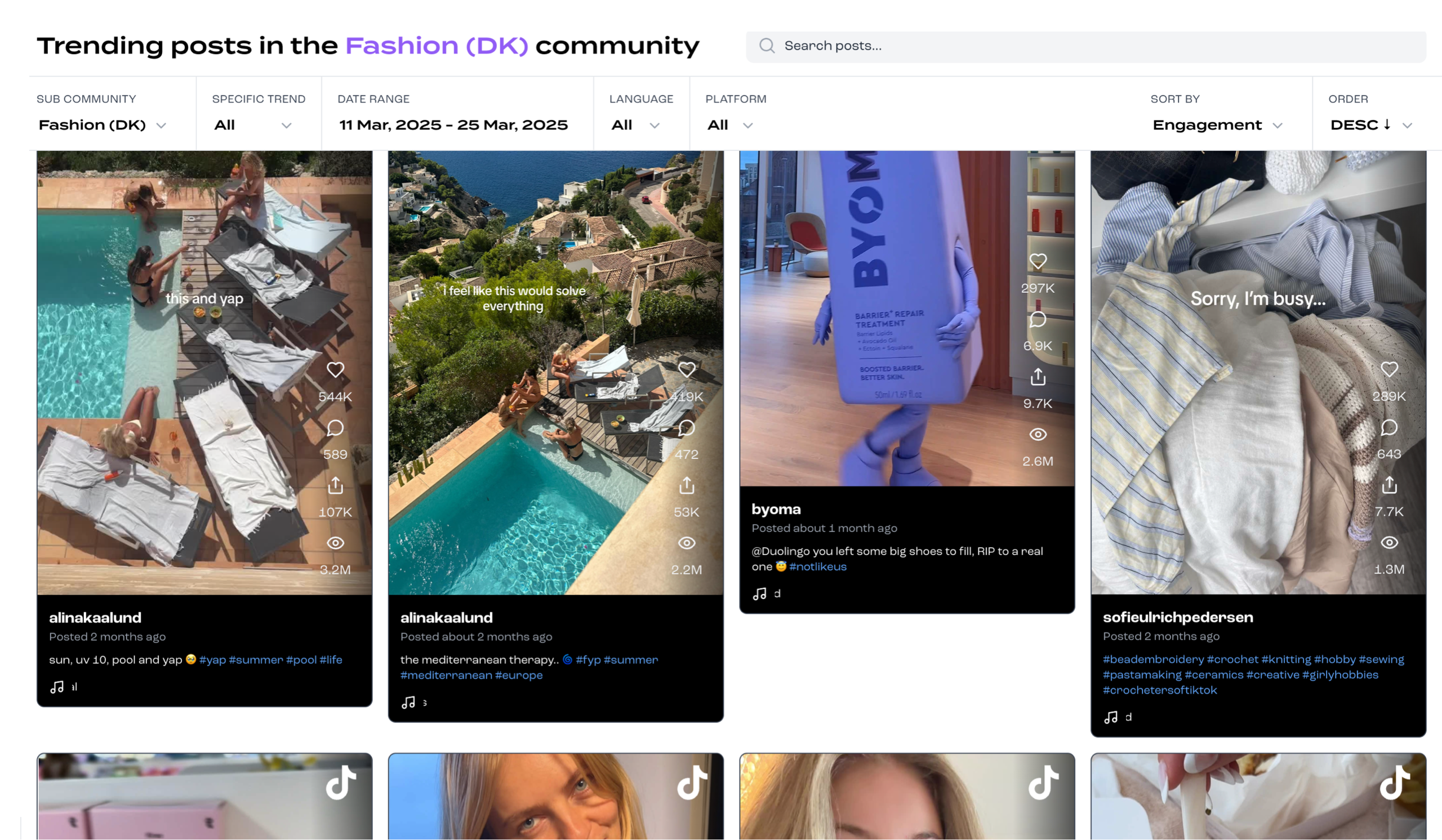 TRNDSET helps businesses adapt to changing trends, stay relevant with their audience, and create engaging content with the unique voice of Nordic creators - all while reducing creative fatigue and research time.