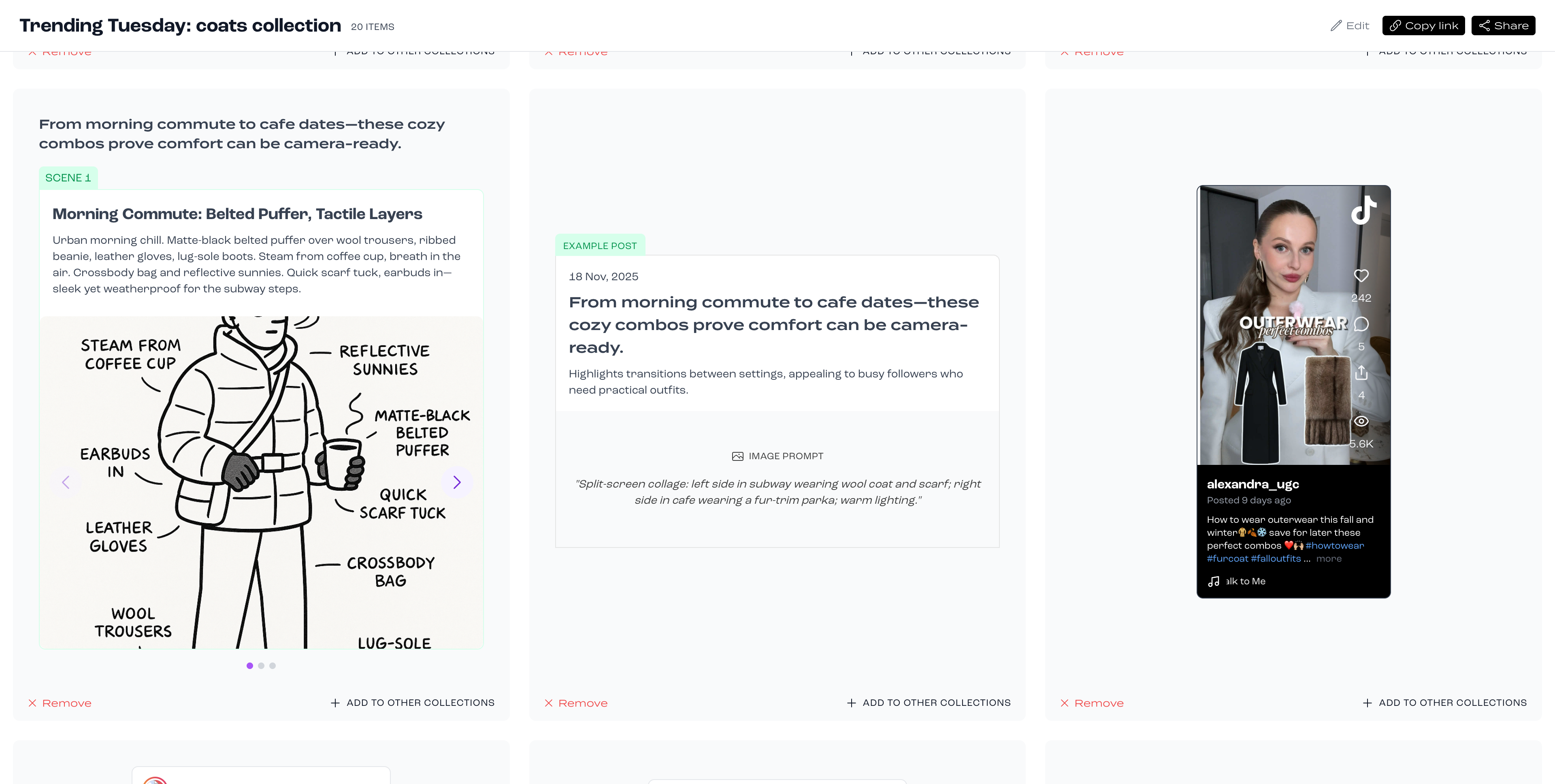 Collections make it simple to capture inspiration, structure ideas, and collaborate—all in one place. Build themed moodboards, keep your creative flow organized, and instantly share with teammates or external partners when it’s time to bring ideas to life.